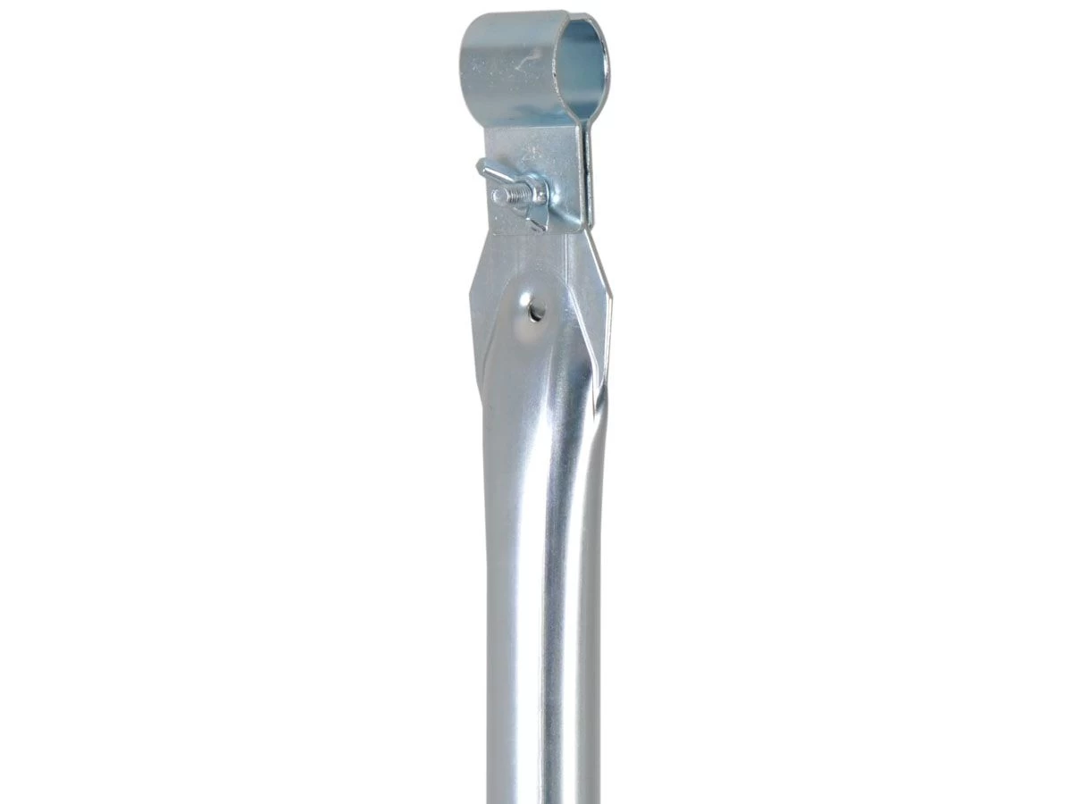 Deze stalen CampKing stormstang met een diameter van 28 mm is voorzien van een scharnierende klapvoet welke met haringen of schroeven vastgezet kan worden aan de ondergrond.