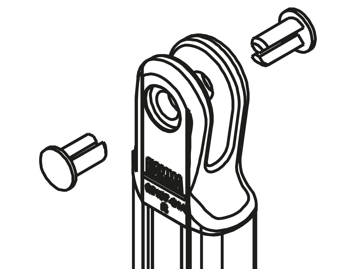 Als het bovenste deel van de staander, waarmee deze aan het scharnierstuk in de voorlijst is verbonden, is afgebroken, kun je deze eenvoudig vervangen. Verwijder de vastzetpinnen, zodat je de staander van het scharnierstuk kunt loshalen. Draai vervolgens de schroeven aan de bovenzijde van het defecte bovenstuk los, en monteer het nieuwe bovenstuk. Zet deze met de meegeleverde vastzetpinnen weer vast aan het scharnierstuk.