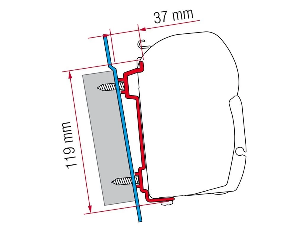 Deze adapter maakt het mogelijk om de Fiamma F45 luifel te bevestigen aan een Ford Transit High Roof. De set bestaat uit 2 beugels van 40 cm.
