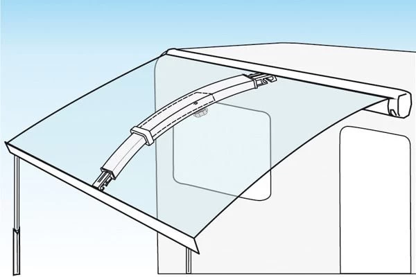 De Fiamma Rafter Pro is een gebogen aluminium spanstok waarmee je het luifeldoek van je cassetteluifel extra kunt spannen. De gebogen vorm zorgt voor een goede afwatering bij regen en voorkomt flapperen van het luifeldoek bij wind. De rafter is traploos in lengte verstelbaar d.m.v. een stelschroef. Dankzij de kunststof eindstukjes is deze stang in bijna elke cassetteluifel te gebruiken.