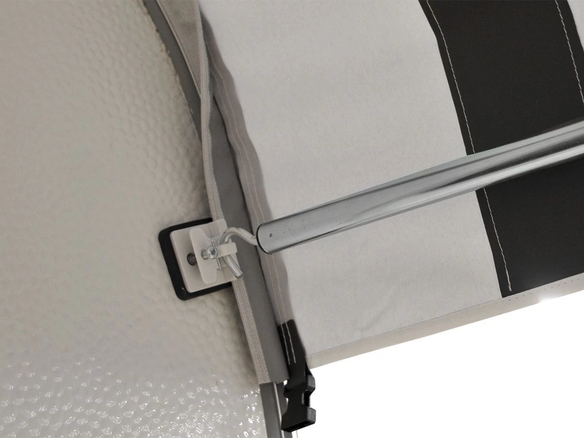 De achterzijde van de Marvella dakluifel is voorzien van verstevigingsvlakken. Hier kunnen optionele zeilogen in bevestigd worden zodat de Marvella dakluifel ook als voortentluifel gebruikt kan worden. Om de juiste maat te bepalen meet je de afstand tussen de punten van de voortent. Dit wordt ook wel de A-B maat genoemd. Je kiest dan de luifel waar de door jou gemeten maat tussen valt.
