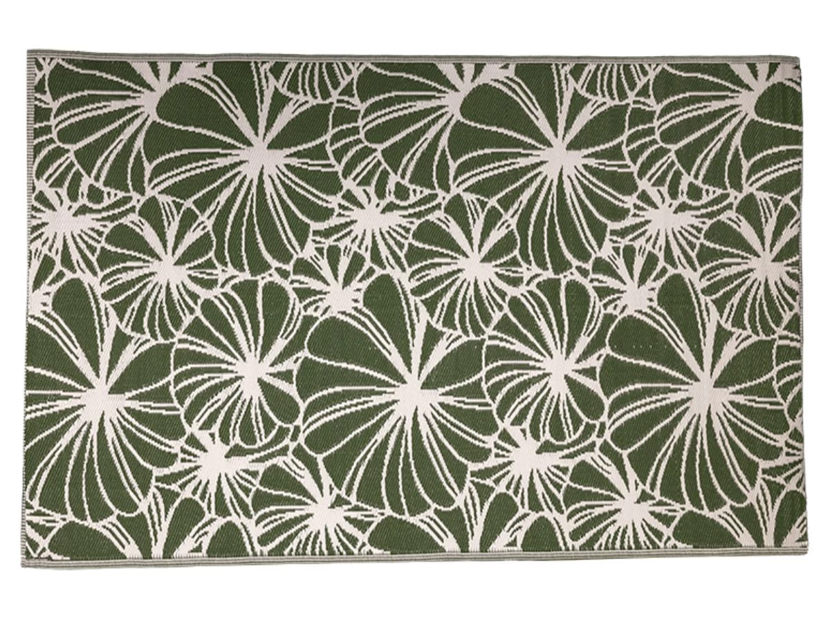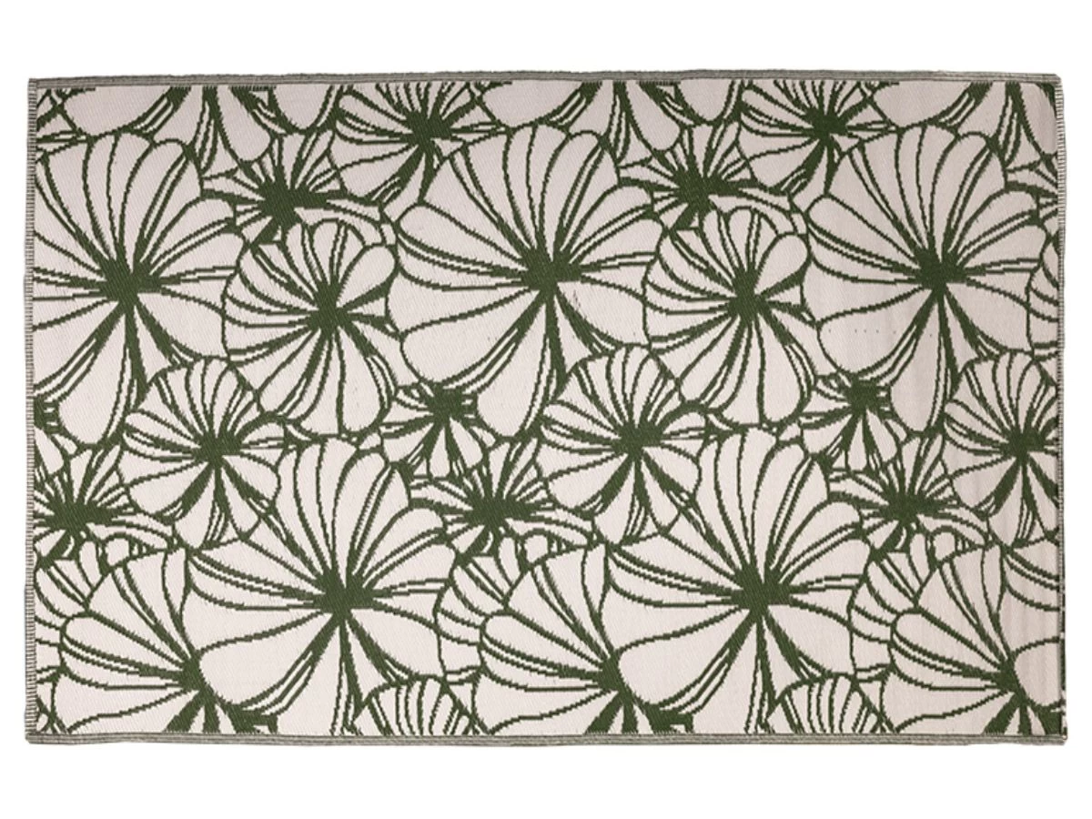 Dit rechthoekige tuintapijt met een bloemen design is een mooie toevoeging aan je tuin of terras. Het kleed is zo geweven dat hij aan beide zijden te gebruiken is.