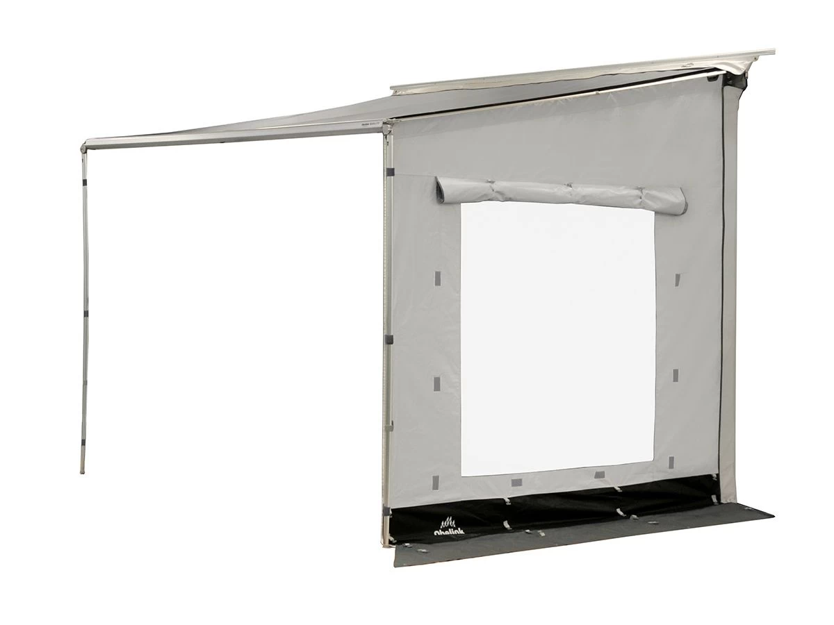 De zijwand is gemaakt van hoogwaardig PVC. Het grote raam zorgt voor veel lichtinval en zorgt ervoor dat je uit de wind kunt zitten zonder dat dit ten koste gaat van je weidse uitzicht. Wil je meer privacy of meer schaduw, dan kan je de afdekflap van de zijwand naar beneden laten rollen.