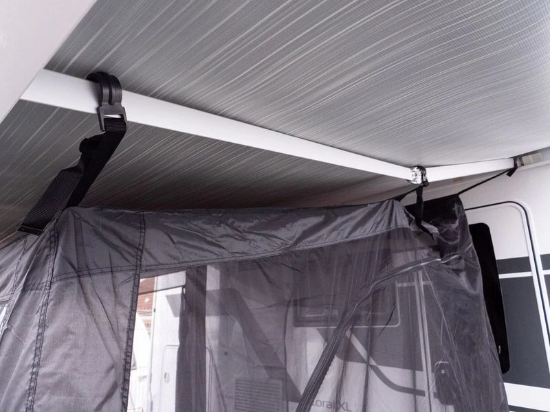 De Mosquito is een handige tent van horrengaas die je eenvoudig onder je luifel hangt. Haak de verstelbare spanbanden met clips achter de knikarmen van je cassetteluifel en zet de onderzijde vast met haringen. Beide zijwanden zijn voorzien van een oprolbare deur zodat je de luifeltent eenvoudig kunt betreden.