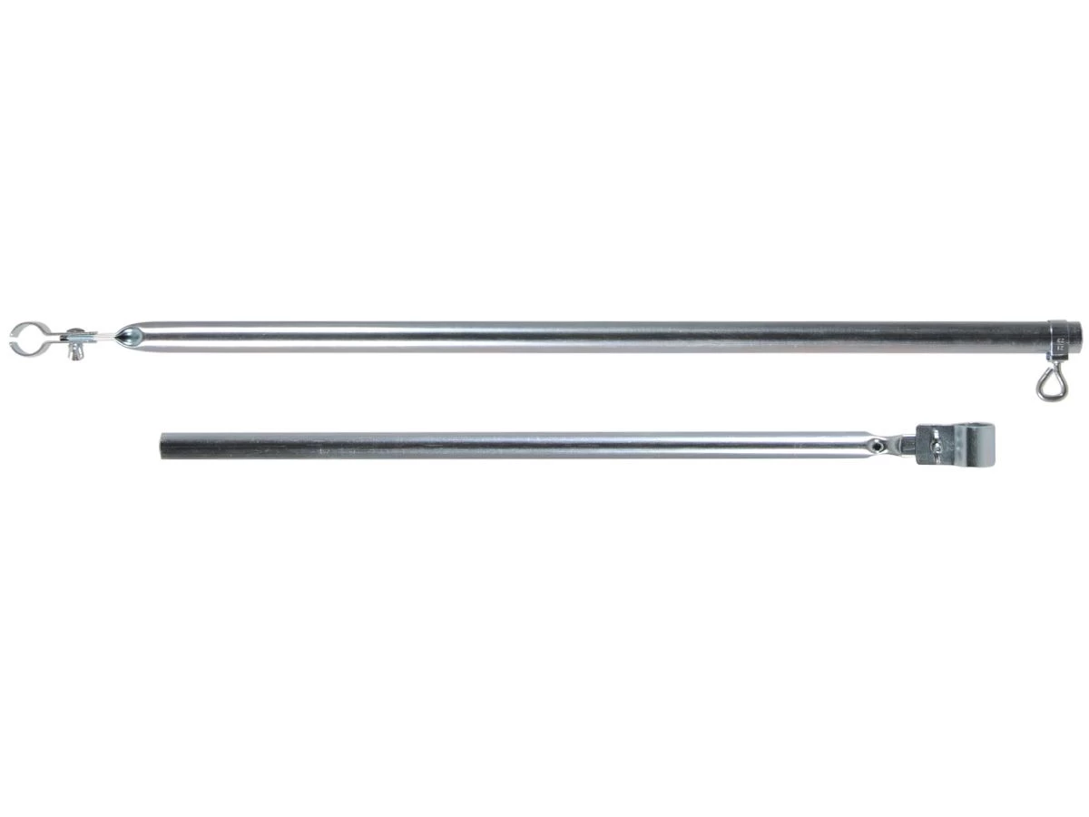 Met deze compacte verandastang kun je een bestaand voortentframe verstevigen. Dankzij zijn korte lengte kan deze verandastang tussen dicht bij elkaar staande stokken geklemd worden zonder dat je hem in hoeft te korten.